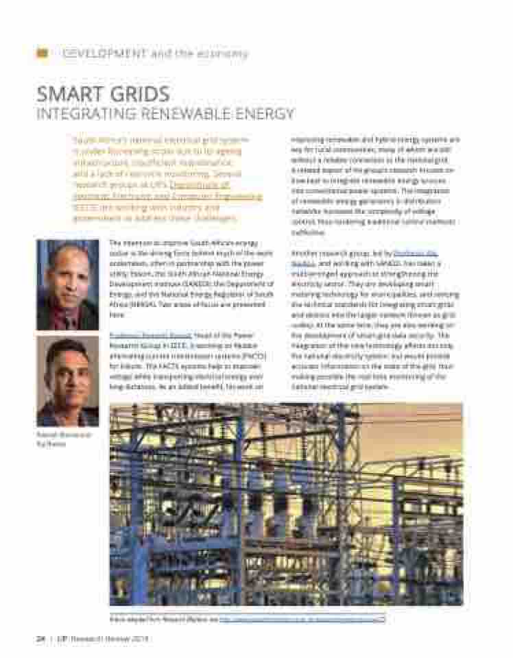 Professor Ramesh Bansal, Head of the Power Research Group in EECE, is working on flexible alternating current transmission systems (FACTS) for Eskom. The FACTS systems help to maintain voltage while transporting electrical energy over long distances. As an added benefit, his work on